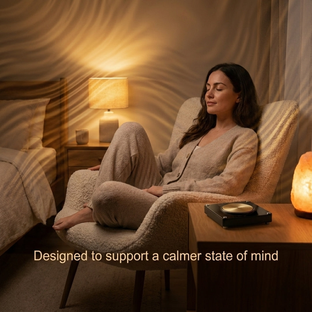 HerAlign™ is designed to support relaxation and mental balance by introducing a steady, natural-frequency presence into your space.